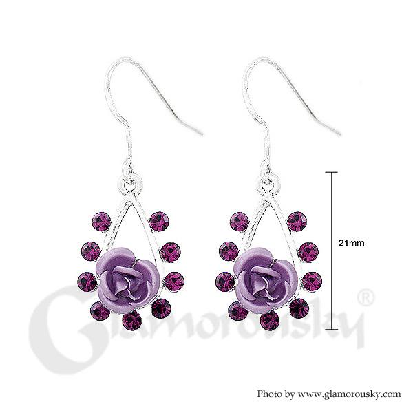 Romantic Rose Earrings with Purple Austrian Element Crystal