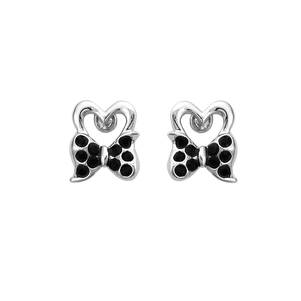 Lovely Ribbon Earrings with Black Austrian Element Crystal