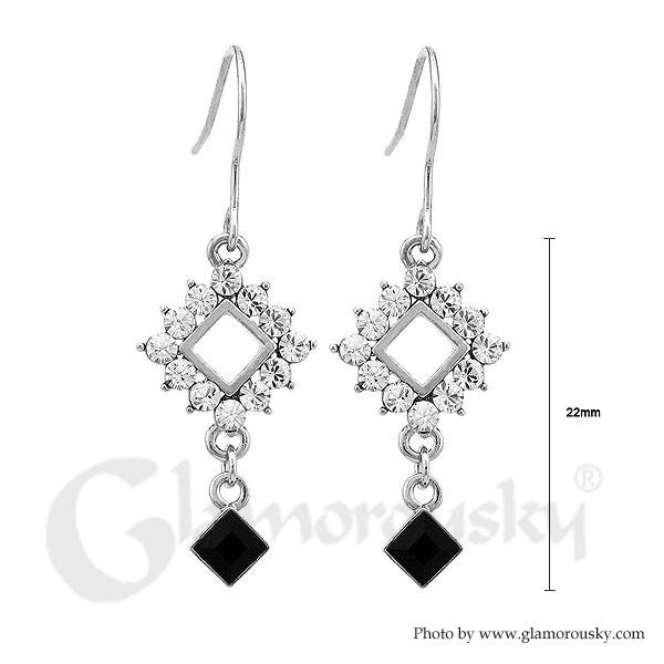 Simple Square Earrings with Silver and Black Austrian Element Crystals