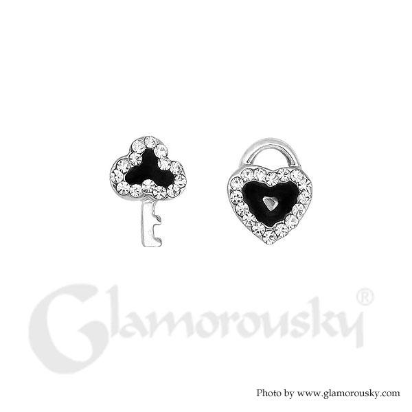 Lovely Lock and Key Earrings with Silver Austrian Element Crystal