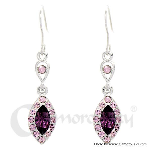 Elegant Marquise Earrings with Purple Austrian Element Crystal