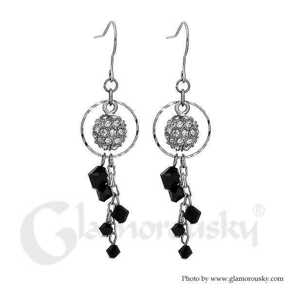Category:Pair EarringsCollection:Banquet EleganceMetail:Silver-Plated Pewter(Grey)Stone:Austrian Crystal(Black)