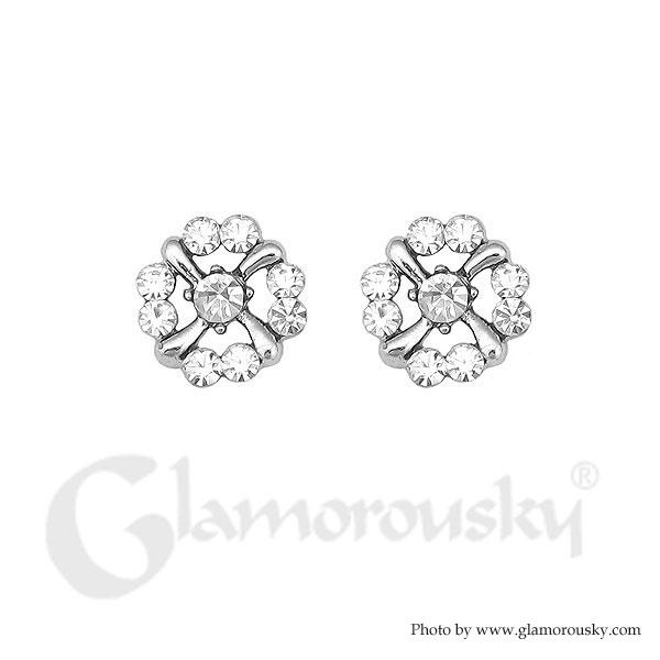 Elegant Round Earrings with Silver Austrian Element Crystal