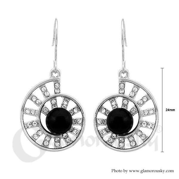 Elegant Spiral Earrings with Silver Austrian Element Crystal and Black Fashion Pearl
