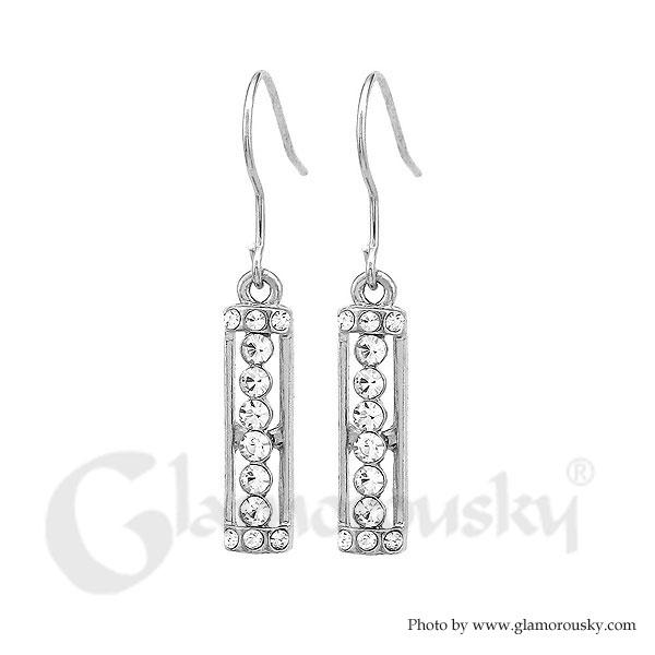 Glistening Rectangle Earrings with Silver Austrian Element Crystal