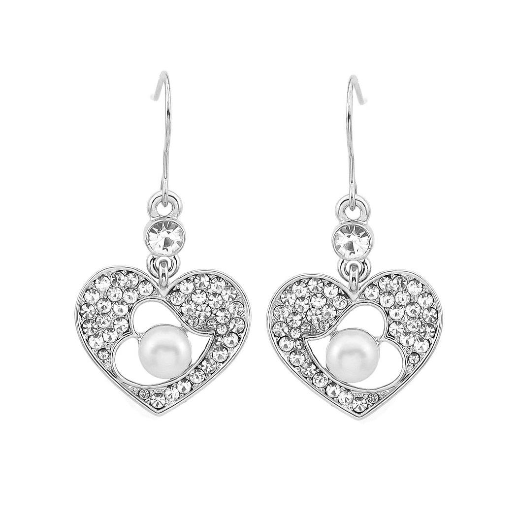 Glistening Earrings with Silver Austrian Element Crystal and White Fashion Pearl
