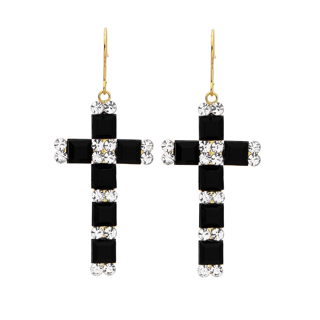 Fashion Cross Earrings with Black and Silver Austrian Element Crystals