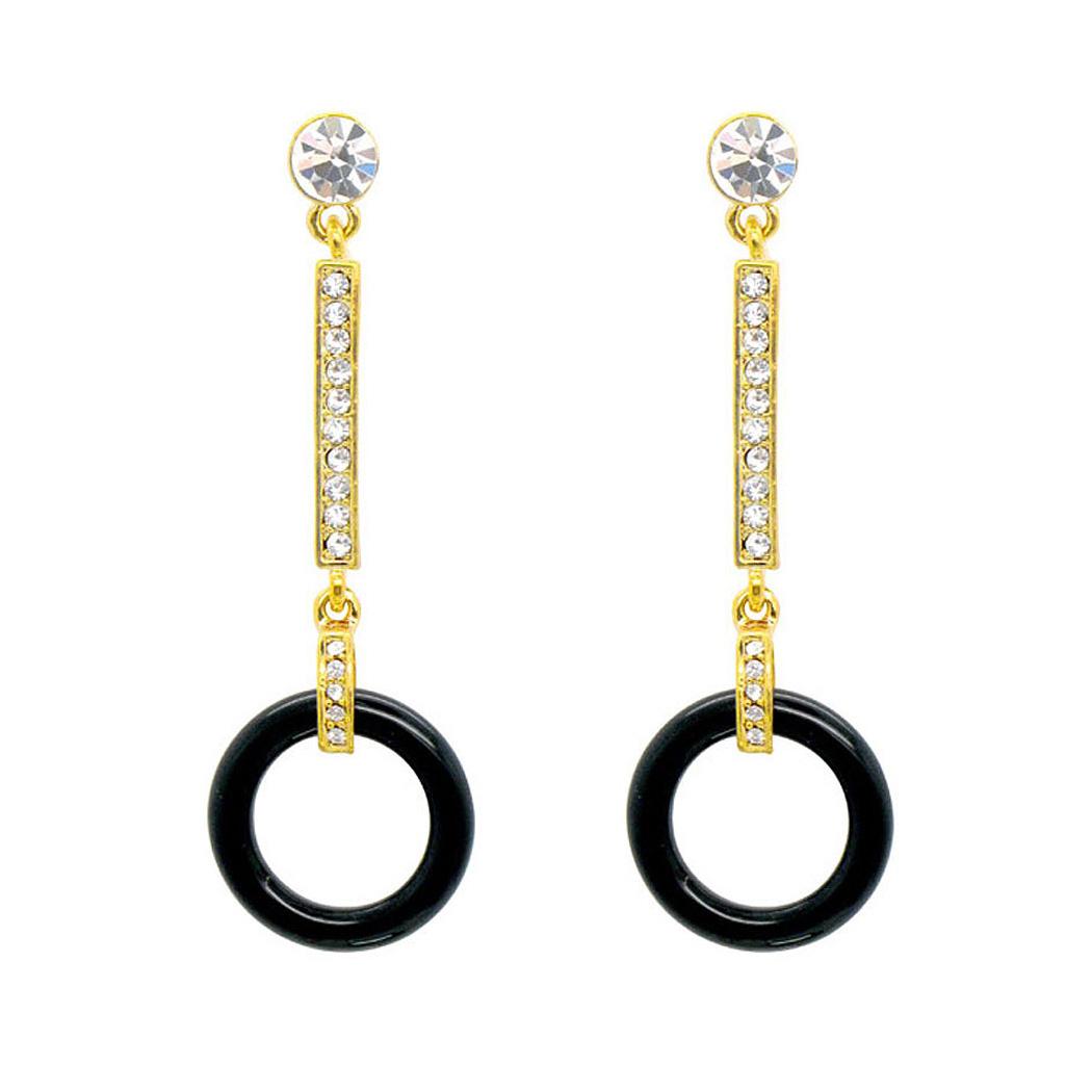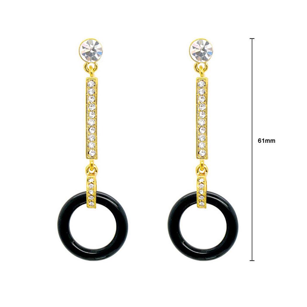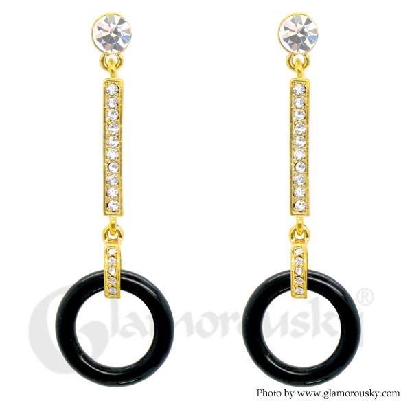 Graceful Round Earrings with Silver Austrian Element Crystal and Black Plastic Beads