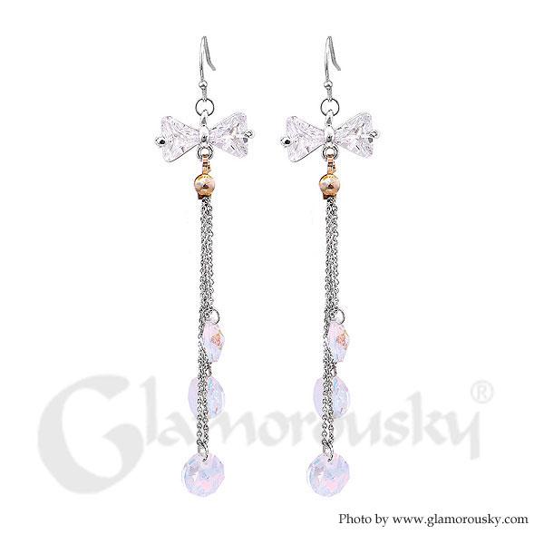 Lovely Ribbon Earrings with Silver Austrian Element Crystal