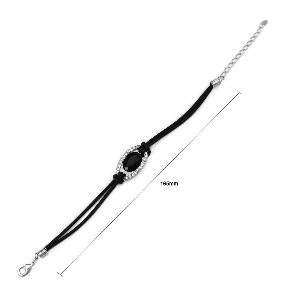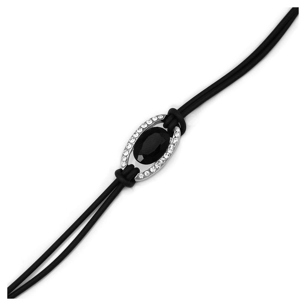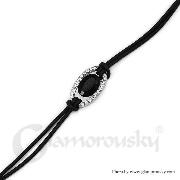 Simple Oval Bracelet with Silver and Black Austrian Element Crystals