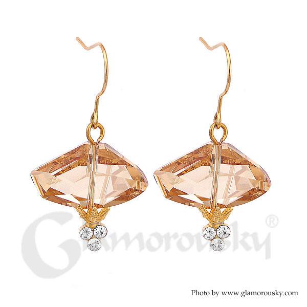 Simple Irregular Earrings with Silver and Yellow Austrian Element Crystals