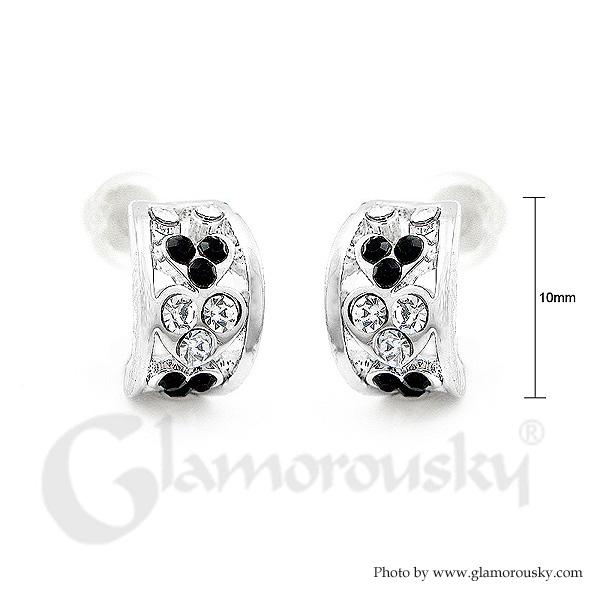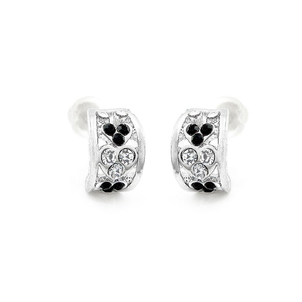 Simple Heart Earrings with Silver and Black Austrian Element Crystals