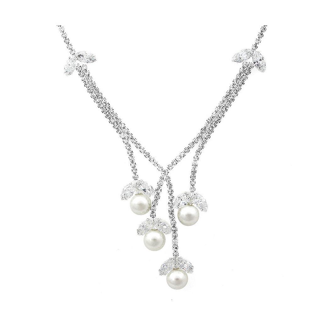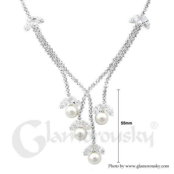 Glimmering Fashion Pearl Necklace with Silver Austrian Element Crystal and CZ