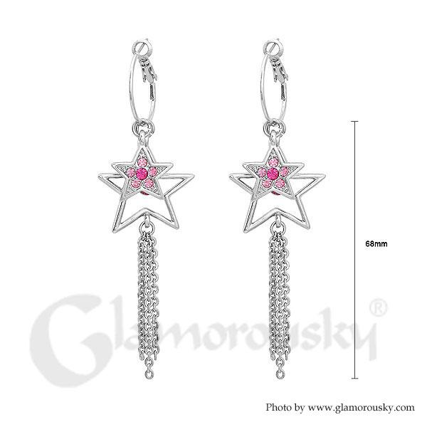 Lovely Star Earrings with Pink Austrian Element Crystal