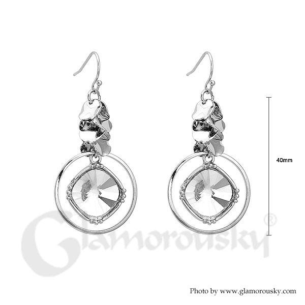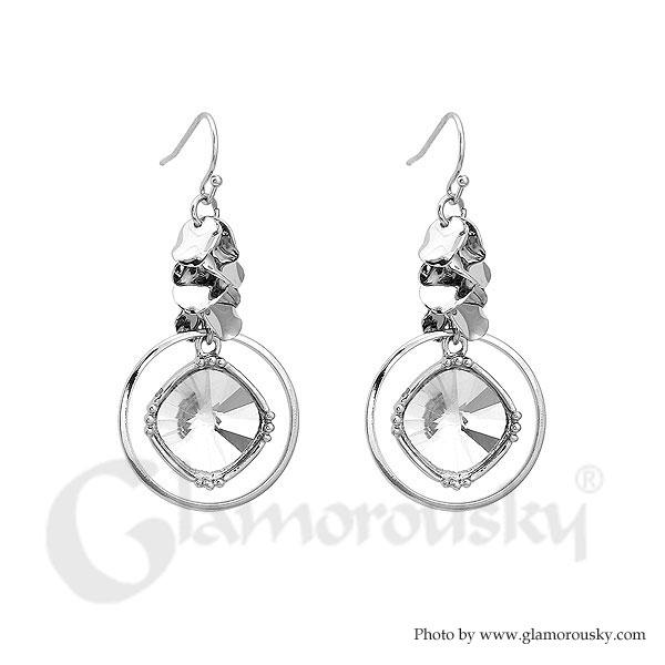 Elegant Round Earrings with Silver Austrian Element Crystal
