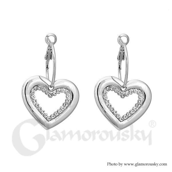 Glistering Heart Earrings with Silver Austrian Element Crystal