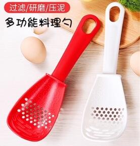 廚房多功能研磨料理勺搗碎瀝水漏勺磨薑蒜勺家用壓土豆泥盛飯勺T