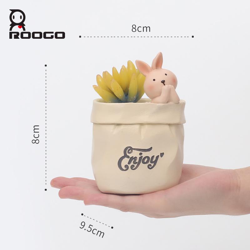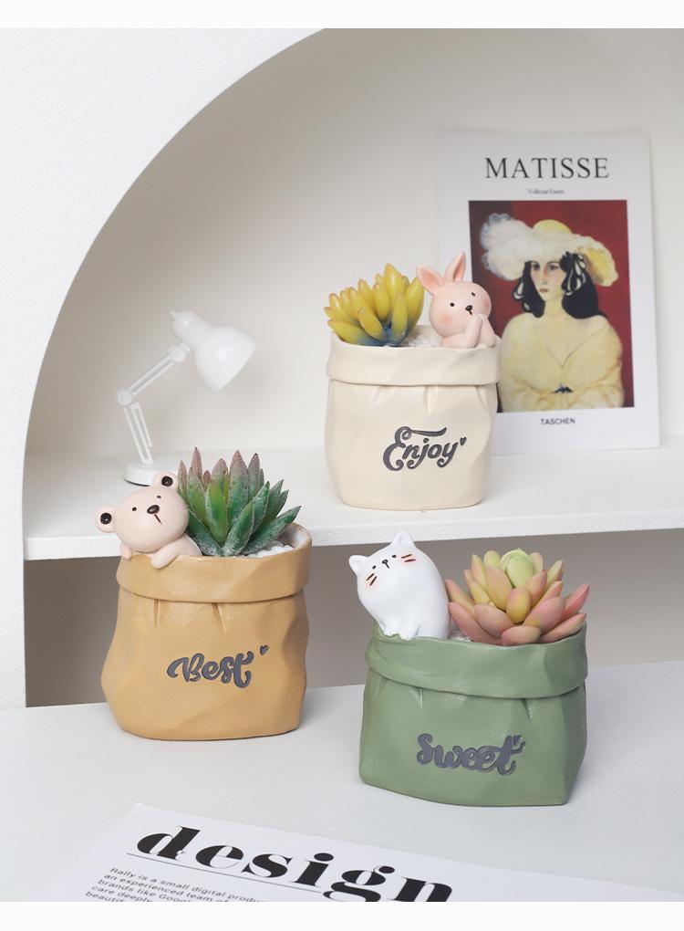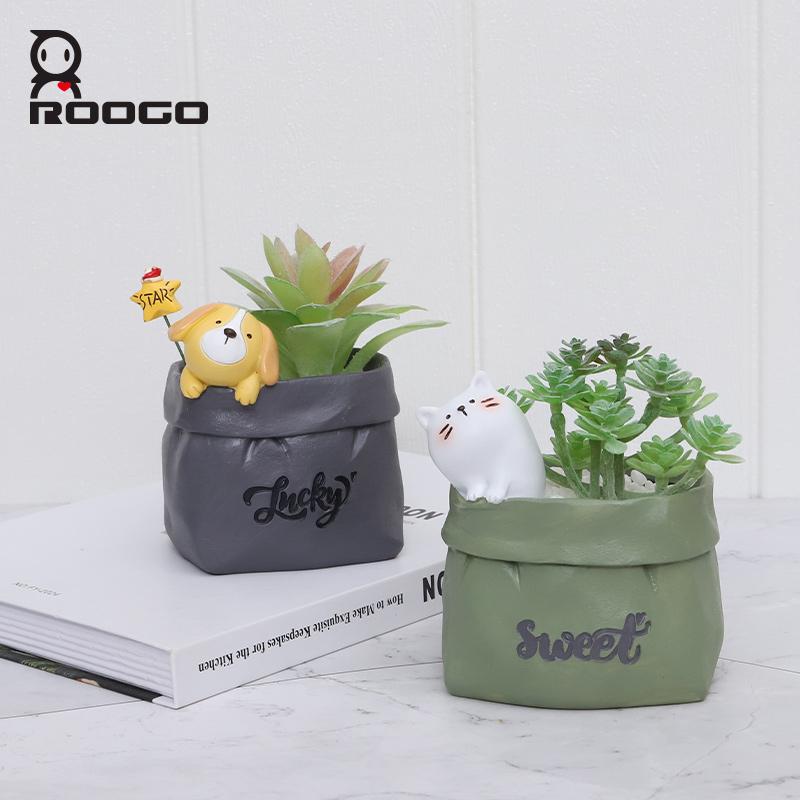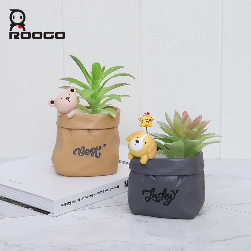 ROOGO創意樹脂資料紙袋形狀動物花盆綠色植物多肉盆景花園裝潢花盆