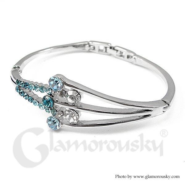 Category:BangleCollection:Banquet EleganceMetail:Silver-Plated PewterStone:Austrian Crystal(Blue)