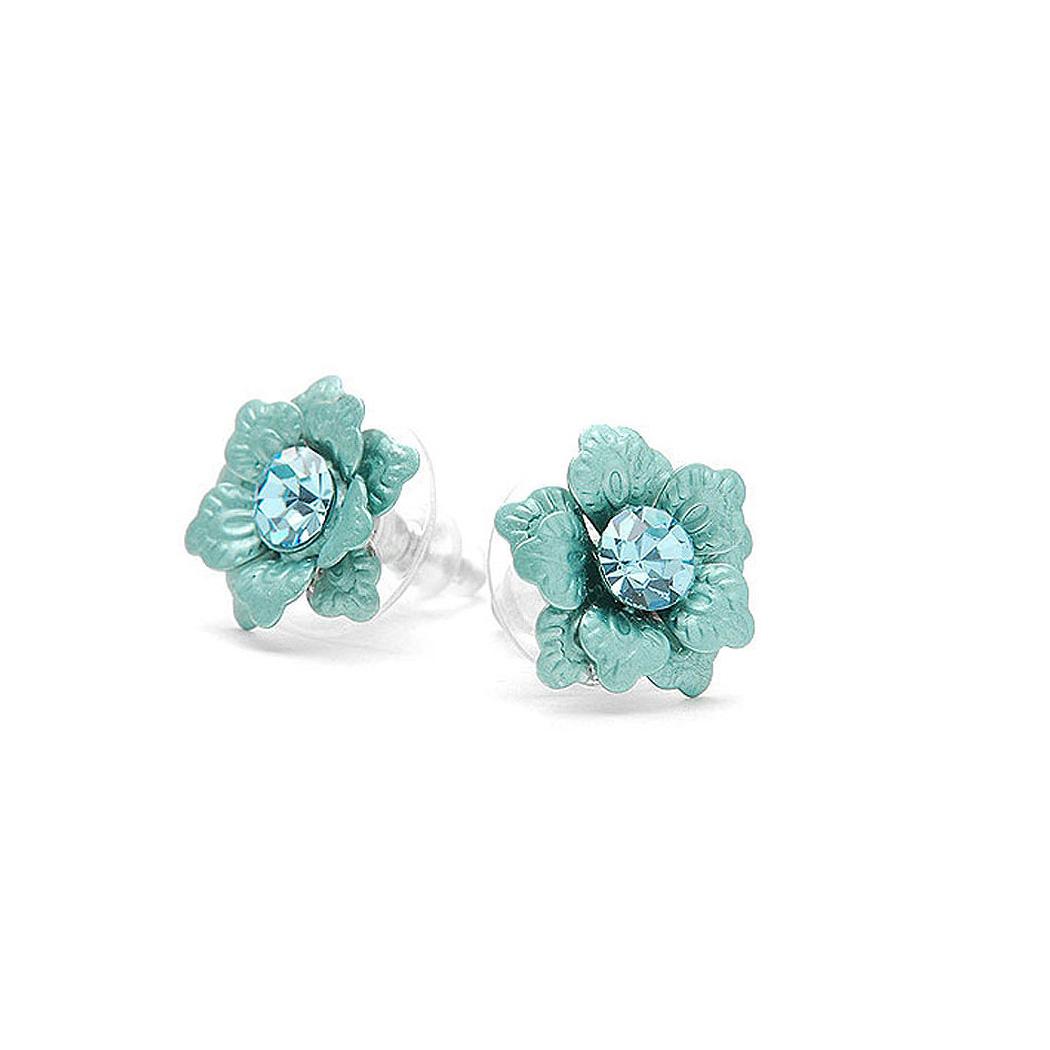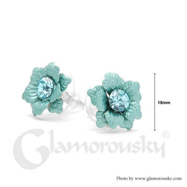 Blue Flower Earrings with Austrian Element Crystal