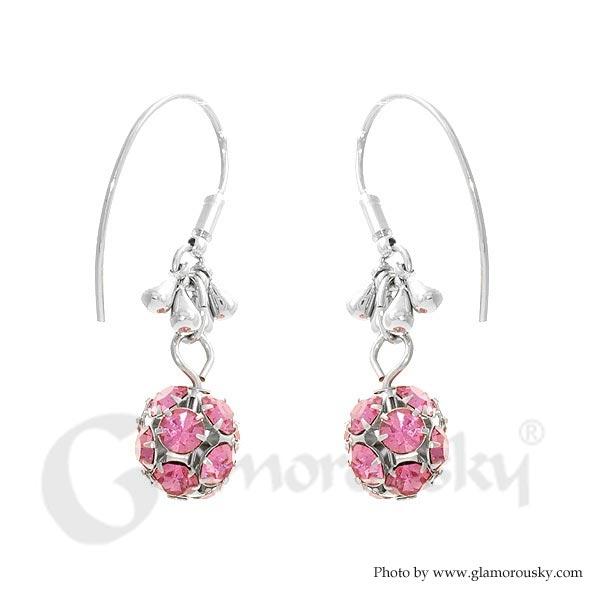 Elegant Ball Shape Earrings with Pink Austrian Element Crystals