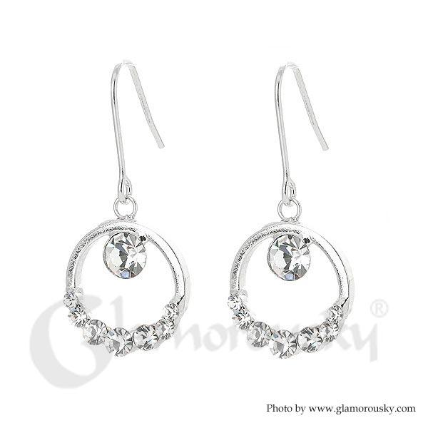 Elegant Round Earrings with Silver Austrian Element Crystals