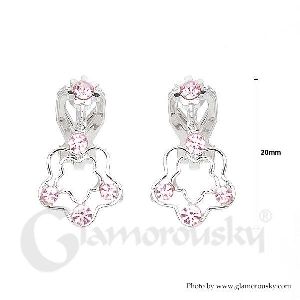 Cutie Flower Non Piercing Earrings with Pink Austrian Element Crystals