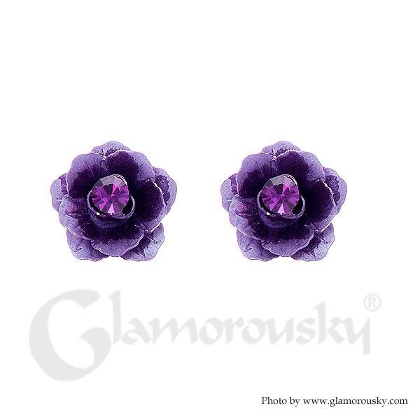 Purple Flower Earrings with Purple Austrian Element Crystals