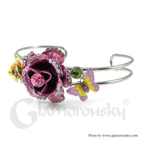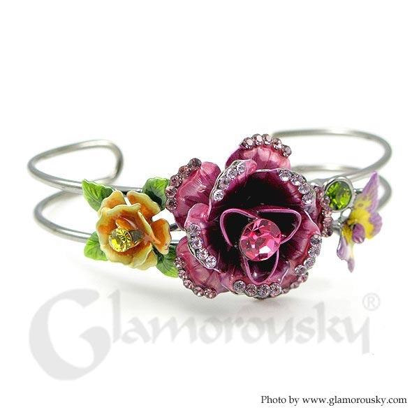 Elegant Rose Bangle with Austrian Element Crystal