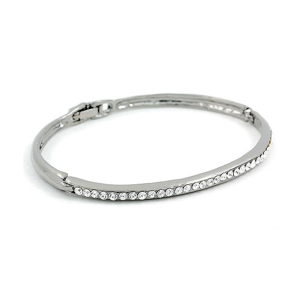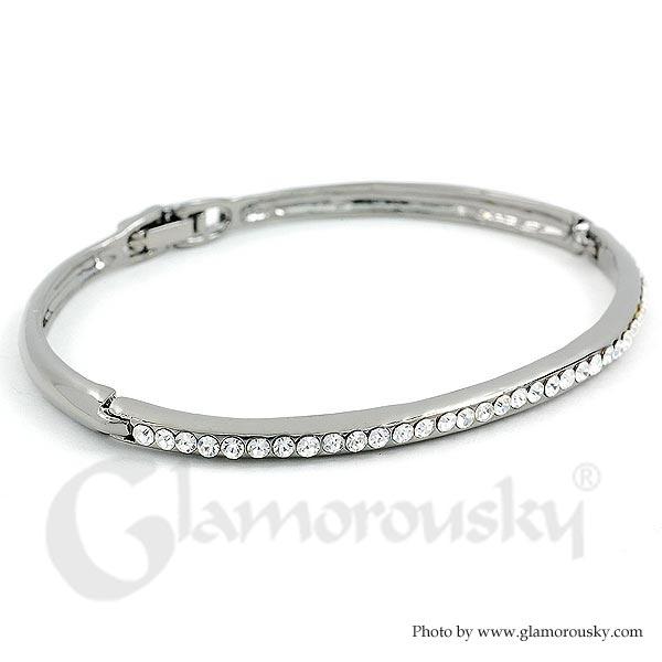 Elegant Black Bangle with Silver Austrian Element Crystals