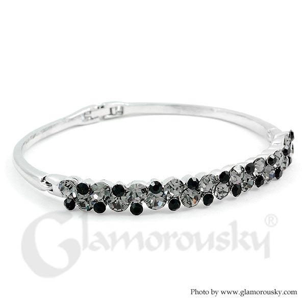 Elegant Bangle with Silver and Black Austrian Element Crystals