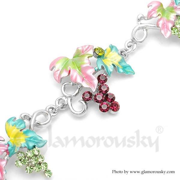 Category:BraceletCollection:Fruity FruityMetail:Silver-Plated Pewter(Silver)Stone:Austrian Crystal(Purple)