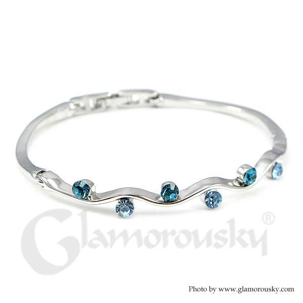 Category:BangleCollection:Banquet EleganceMetail:Silver-Plated Pewter(Silver)Stone:Austrian Crystal(Blue)