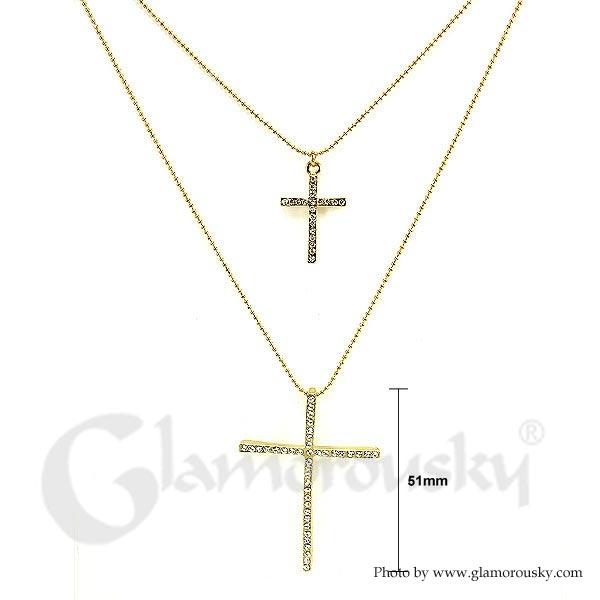 Elegant Cross Necklace with Silver Austrian Element Crystals