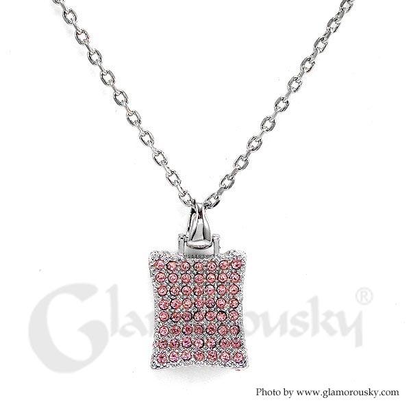 Glistering Rectangle Pendant with Pink Austrian Element Crystals and Necklace
