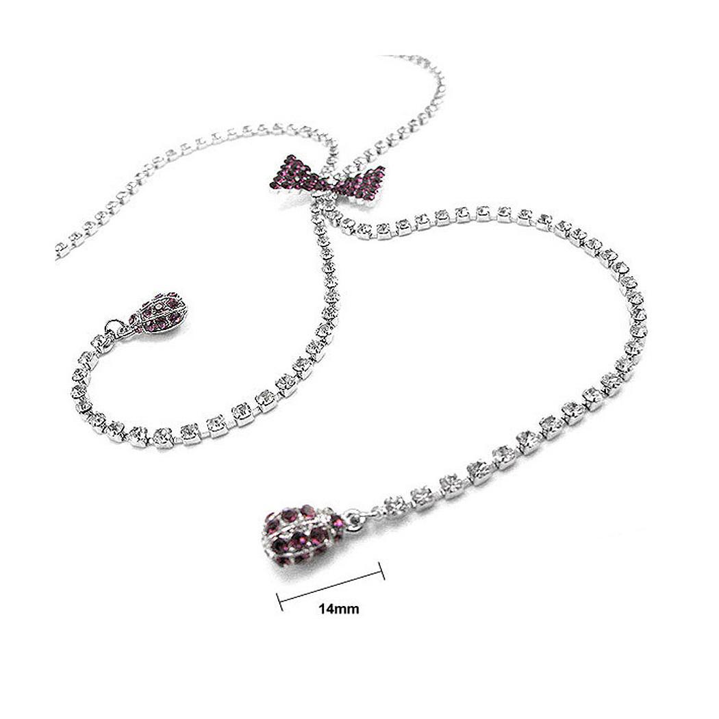 Elegant Ribbon Necklace with Silver and Purple Austrian Element Crystals