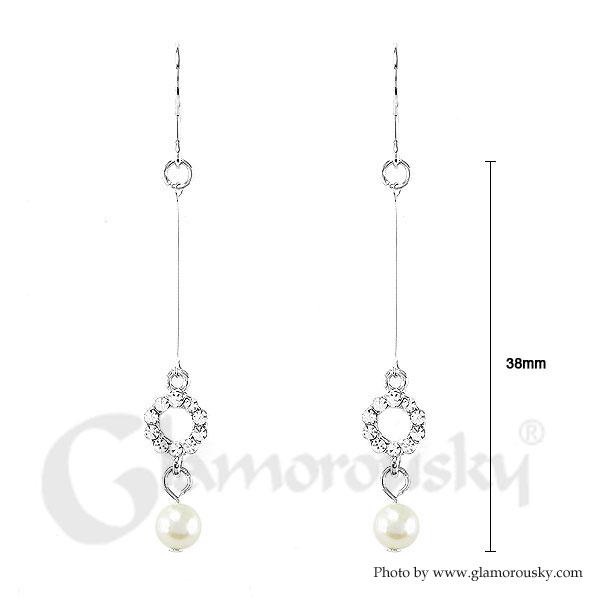 Elegant Earrings with Silver Austrian Element Crystals and White Fashion Pearl