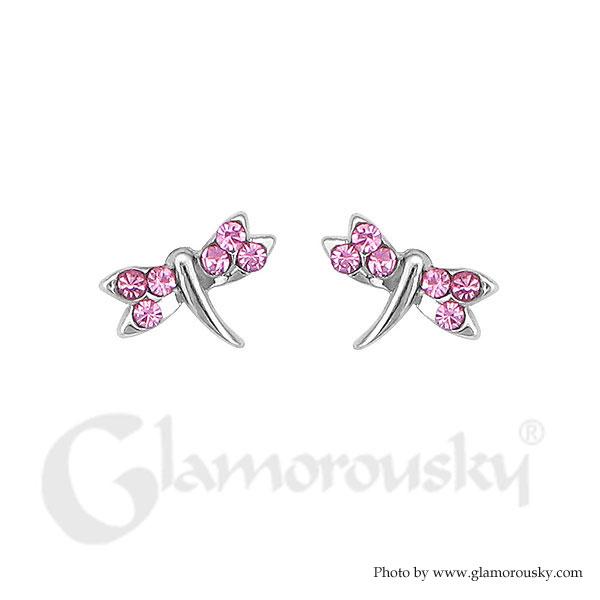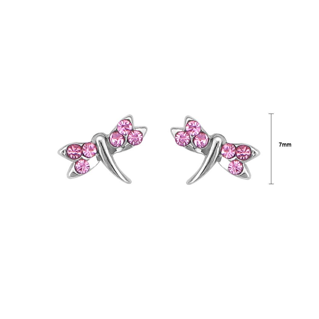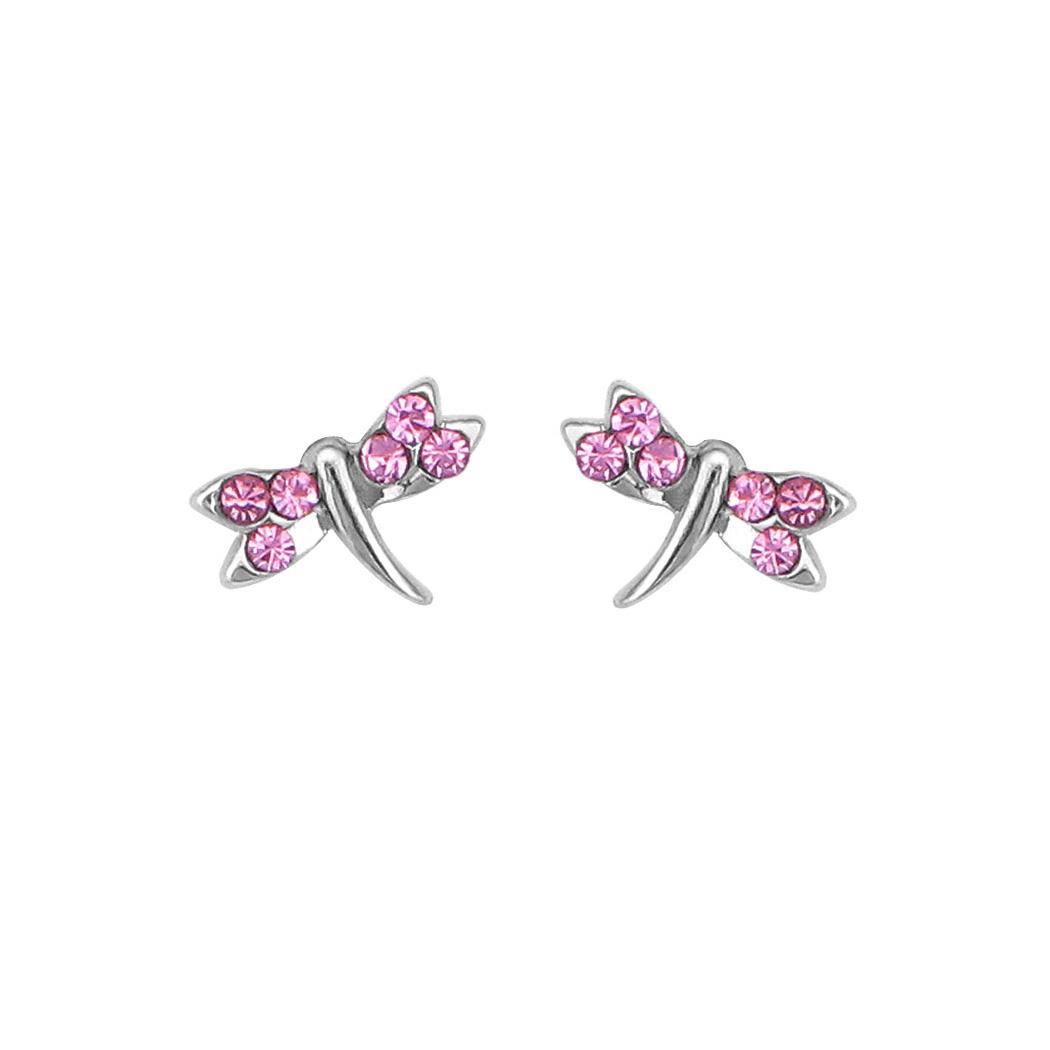Chic Dragonfly Earrings with Pink Austrian Element Crystal