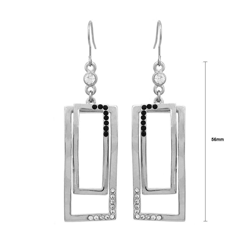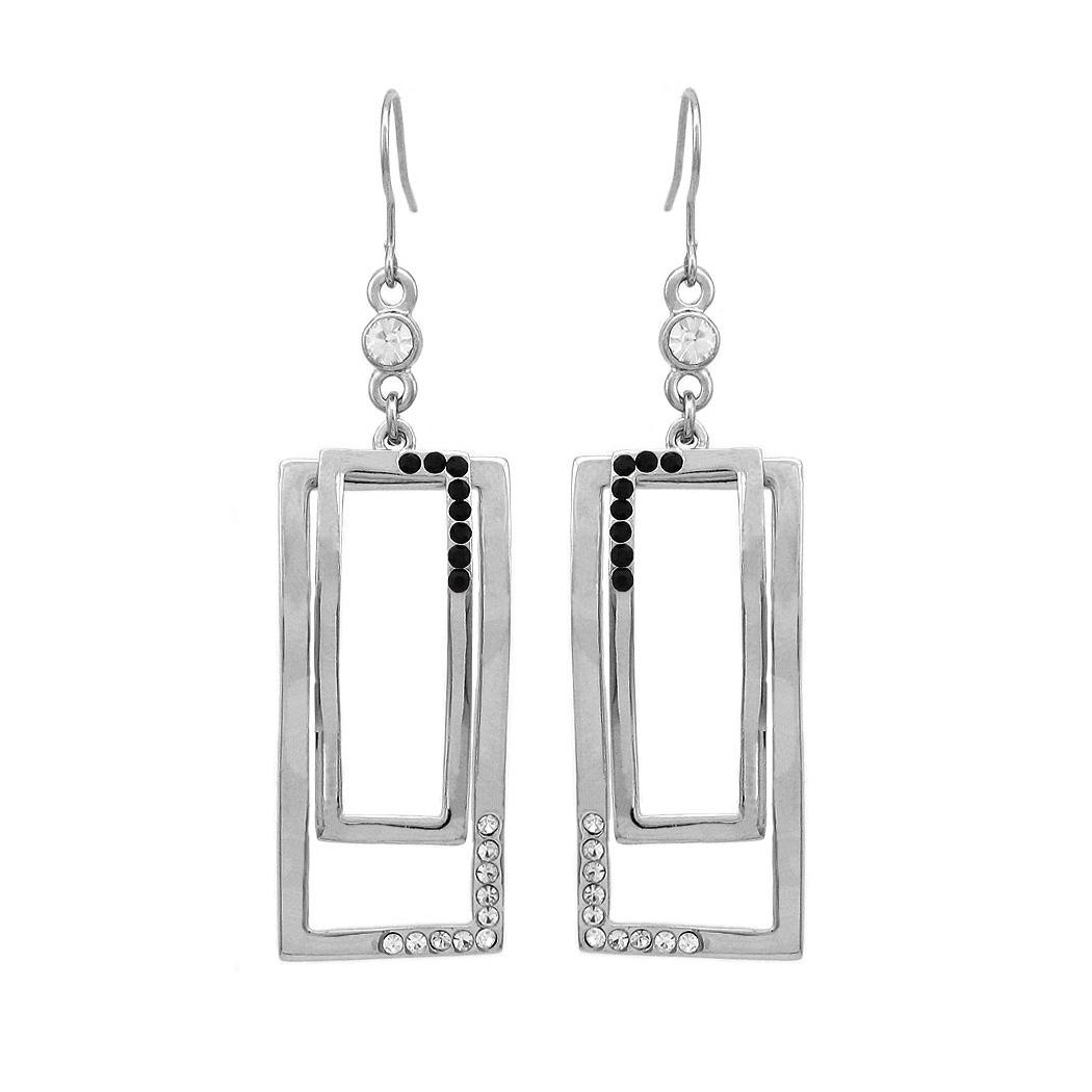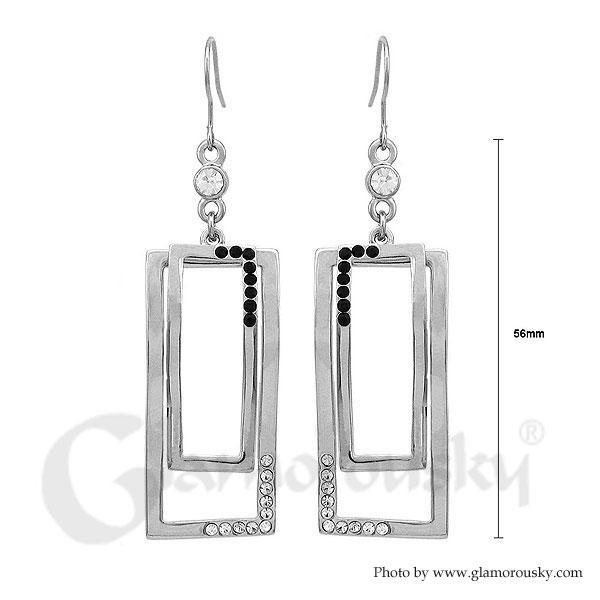 Elegant Rectangle Earrings with Silver and Black Austrian Element Crystals