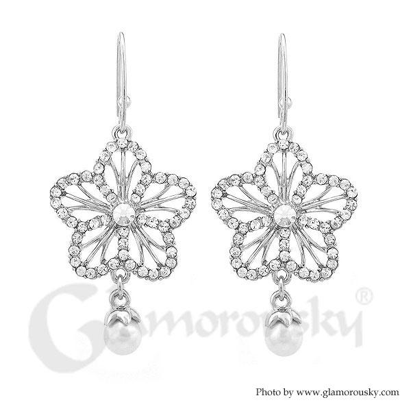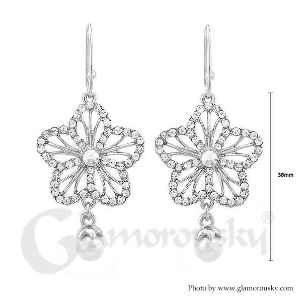 Graceful Earrings with Silver Austrian Element Crystal and White Fashion Pearl
