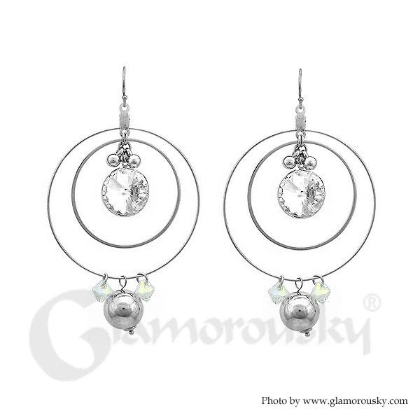 Elegant Round Earrings with Silver Austrian Element Crystal
