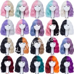 歐美時尚假髮 雙拼泡面短捲髮齊劉海 亞馬遜速賣通熱銷款廠家直銷