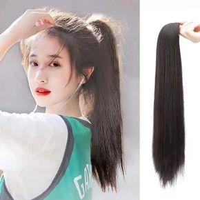 假髮直發馬尾啞光絲假髮馬尾女士綁帶抓夾假馬尾辮子中長短馬尾辮