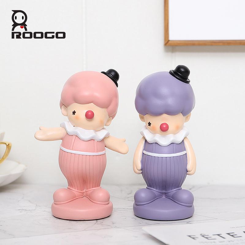 ROOGO Creative Clown Resin Sculpture Home Decor Accessories Cartoon Figures Room Desktop Ornament Gifts for Couples Children
